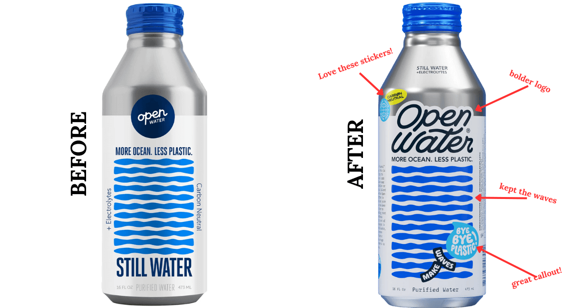 Water brand gets a refreshing refresh. Open Water got a new logo, website, and packaging. This update aims to enhance their identity in the consumer packaged goods market.