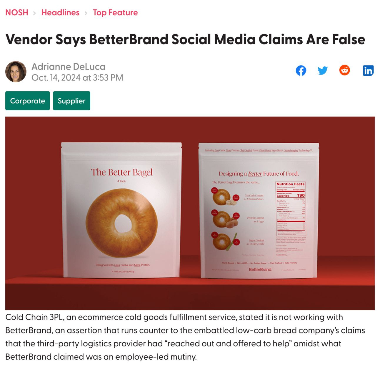 This kicked off a domino effect. CPG nerds like myself (+ Snaxshot, The Information, Nosh, and many others) are still trying to piece together what in the hell is happening. Investor, retailers, vendors all come out of the woodwork claiming they haven’t heard (nor have been paid) by this company in weeks and months.
