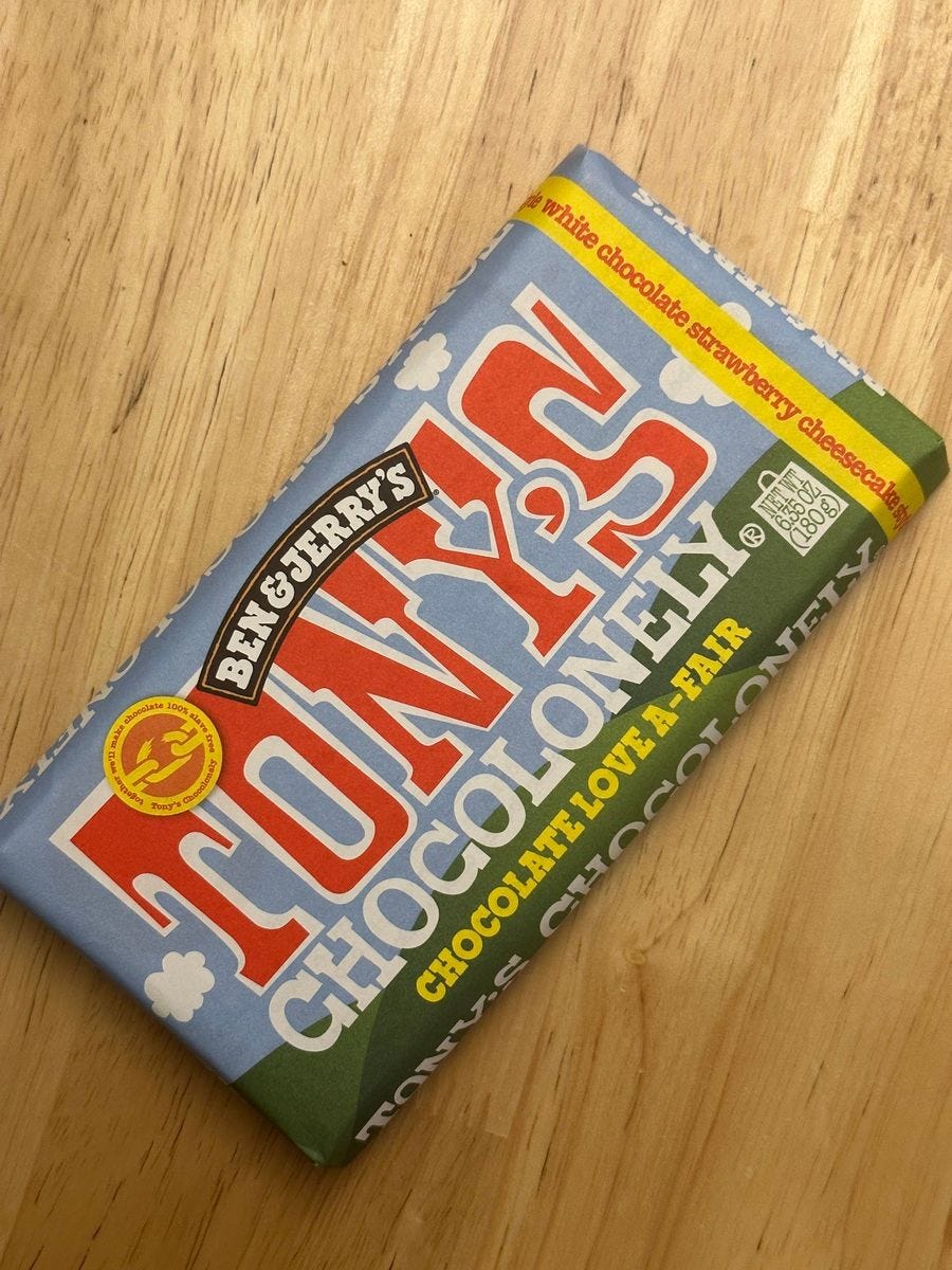 Tony’s Chocolonely x Ben & Jerry’s went live this week and I just had to order myself a bar on GoPuff. So freaking good!