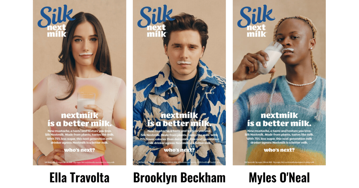 Just as nepo babies mooch off their parents success, so is Silk Nextmilk. They launched an ad campaign featuring the children of celebrities wearing a plant-based 'stache, reminiscent of the iconic Got Milk milk mustache campaign. I think it’s a fun campaign! (source)