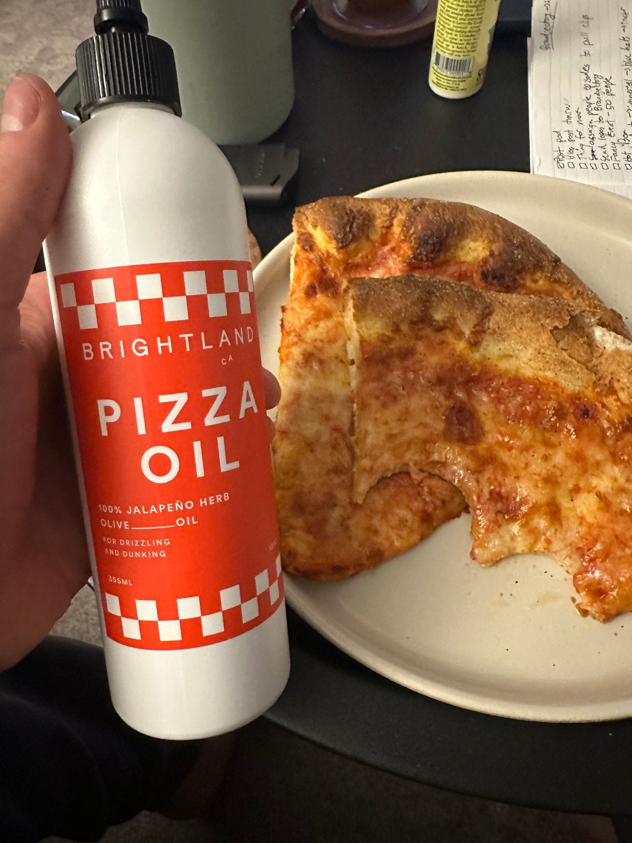 Finally cracked into this Pizza Oil from Brightland and hot damn is it freaking delicious. Though I was gifted this one, I will be buying a replacement once this is done. Freaking incredible.