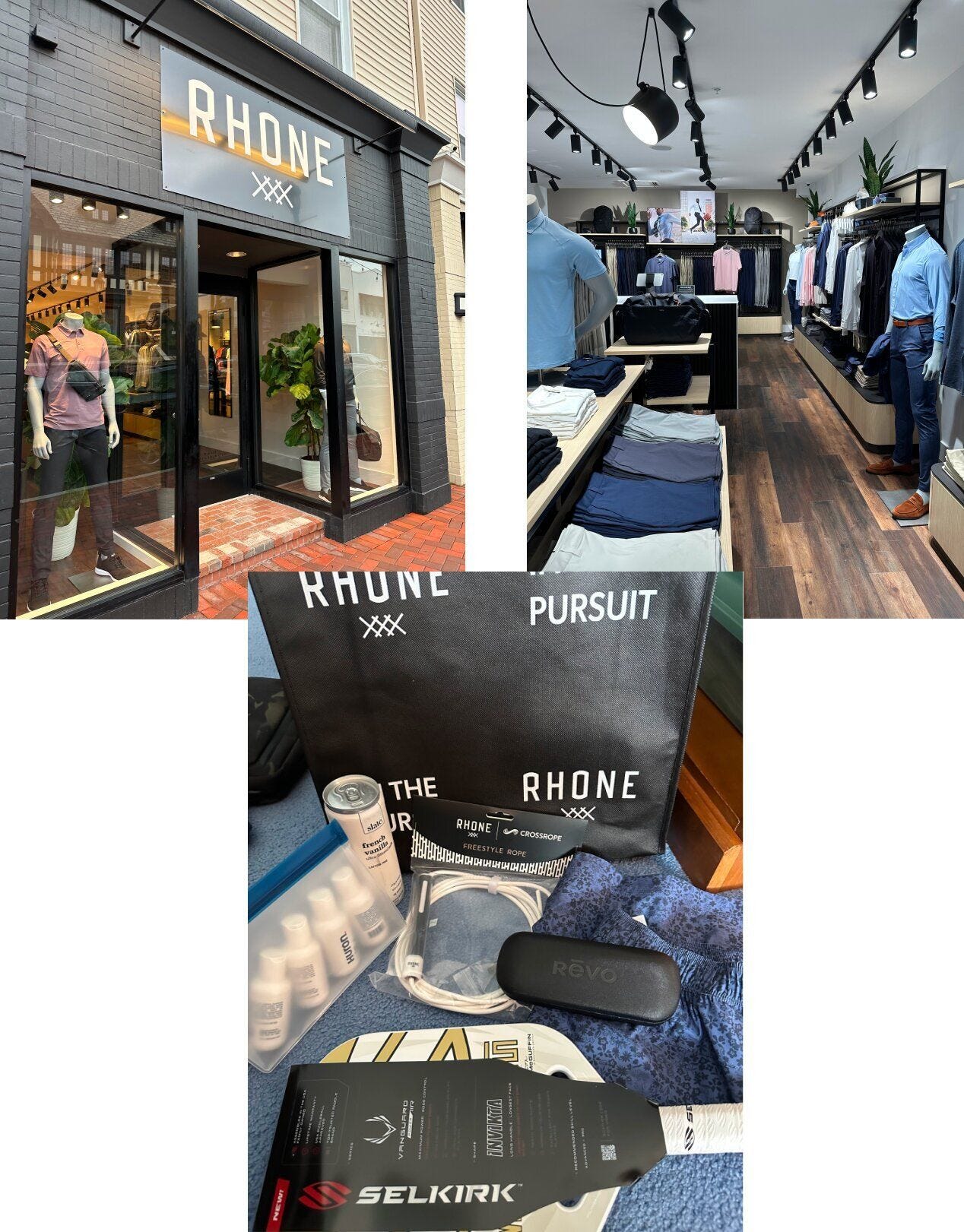 This past week I got an early preview of the new flagship Rhone store in Westport, CT. Rhone is a performance lifestyle brand that offers high-end activewear and commuter clothing. I also got a wonderful gift bag featuring Slate Milk, Huron skincare, Crossrope, a Selkirk Pickle Ball racket, and Revo sunglasses! Not too shabby!