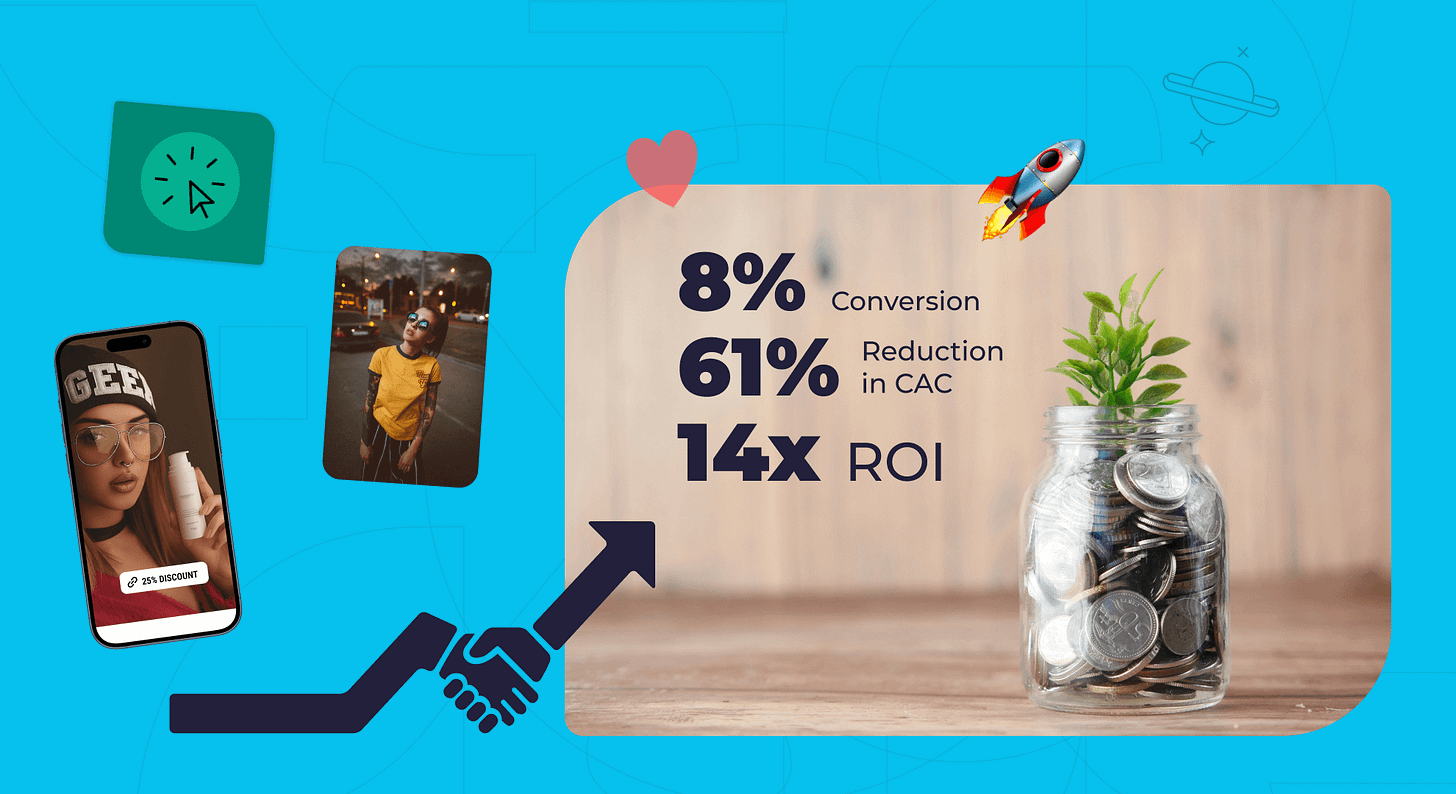 Real numbers: 5¢ CPC, 61% CAC reduction, 14x ROI