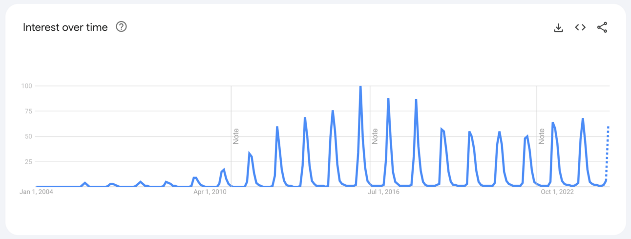 Pumpkin spice remains a highly seasonal topic in search queries: