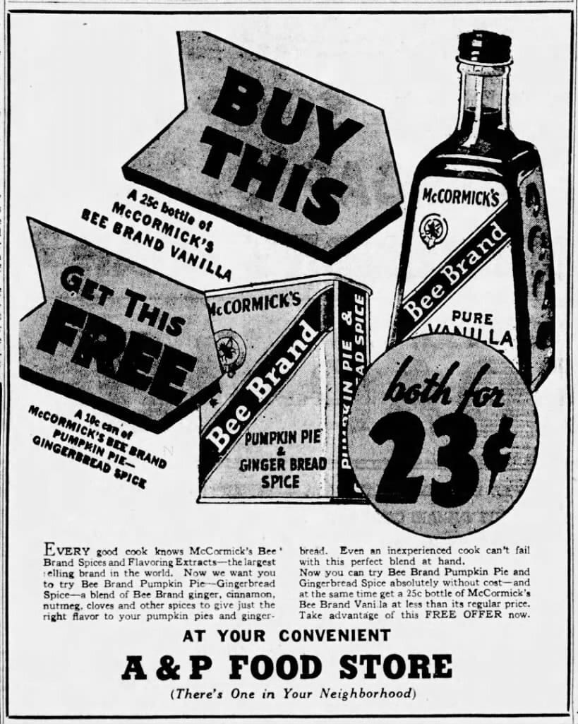 1934: McCormick & Company jumps on the bandwagon with their own blend, just a few years after the launch of canned pumpkin in 1929.2