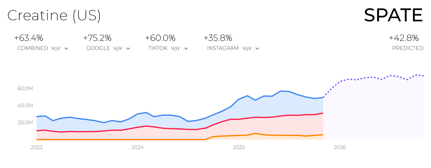 Beyond the obvious push from protein, Good Culture won because it took a dying dairy product and fully revived it, featuring cleaner ingredients (no gums, preservatives or thickeners) and noticeably better texture. Over the past three years, Good Culture’s sales jumped over 300% and it became the #1 cottage cheese brand in the natural channel, holding 50% of the cottage cheese set at Whole Foods. 🤯