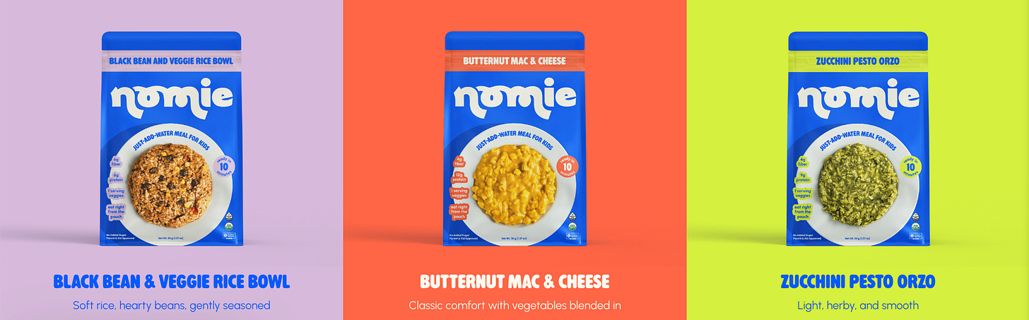 I am so HERE for freeze-dried meals! As Nate mentioned, The Cumin Club stole my heart as the first truly elevated freeze-dried, “just add water” meal brand I’d ever tried. But Nomie has quickly followed suit, this time in the Kids Meal category.