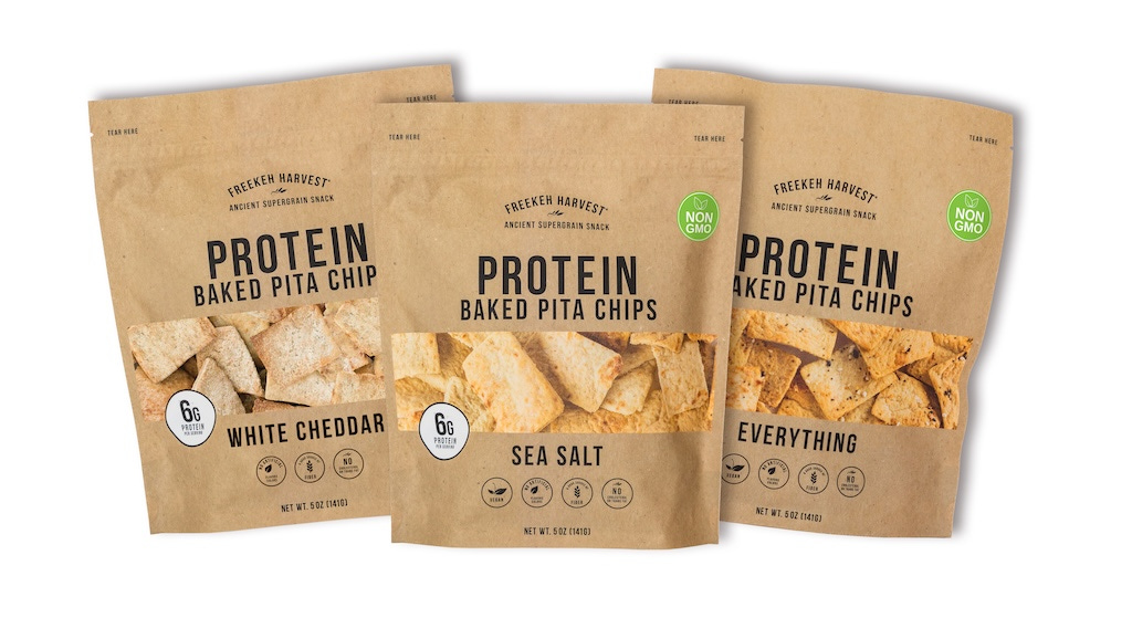 So you can imagine how excited I was when I saw Freekeh Harvest’s booth at FancyFaire, demoing a high-protein pita chip made with the ancient Mediterranean supergrain freekeh. Freekeh Harvest’s pita chips offer 6g protein and 3g of fiber per serving, but that isn’t even what sold me—the taste did. These are perfectly crunchy pita chips that taste homemade—not weirdly oil-slicked like Stacy’s or cardboardy/dry, but something right in between. I love the nutty, almost toasty flavor that the freekeh adds.