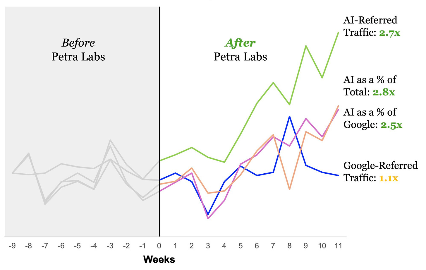 Even having worked with DTC/CPG brands for years, we’re honestly still trying to understand this beast of a topic ourselves. We’ve been looking for experts who understand this topic deeply (not just those who jumped on the GEO bandwagon), and discovered Petra Labs: a combo of a brilliant software and an agency that manages AI discovery end-to-end.