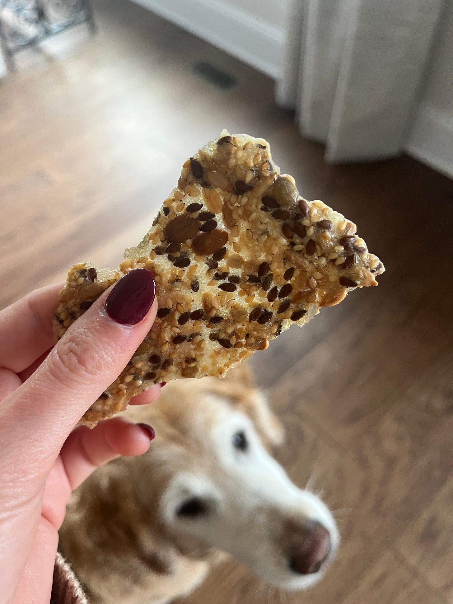 Shockingly delicious. This ingredient list reads like the flavor would be something like “cardboard with a hint of trail mix.” But in reality? These crackers somehow achieve this satisfyingly light, nutty flavor that pairs perfectly with just about anything. They’re crispy, savory, and truly addicting—don’t say I didn’t warn you.
