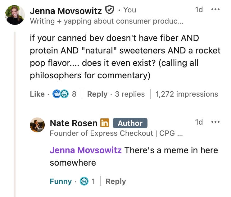 This hits nearly every major CPG food trend: We’ve got prebiotics and fiber, protein (not just any protein, but clear, plant-based protein), low sugar, and it’s sold on TikTok.