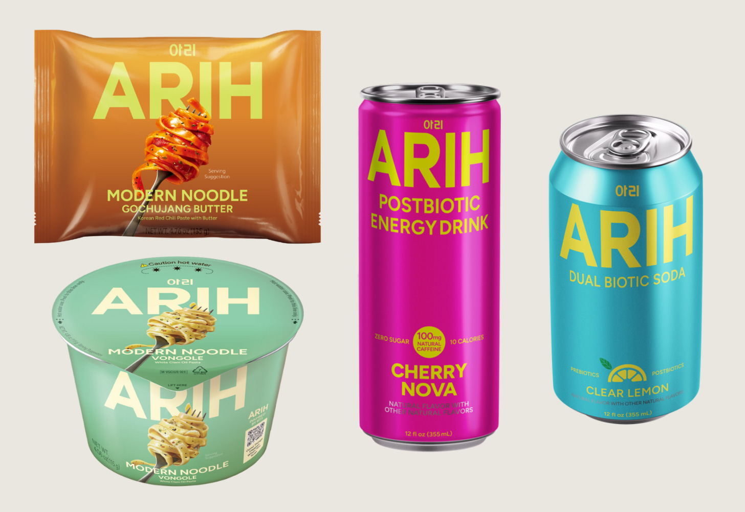 BTS, the K-Pop legends and CPG collaborators? Apparently so! Korean F&B conglomerates Paldo and hy launched ARIH, a Western-Korean fusion F&B brand developed “inspired by” boy band BTS, exclusively at Walmart US. The line includes stir-fried noodles in 7 flavors, called “Modern Noodles” and “postbiotic” energy drinks and “dual biotic” sodas (what a bizarre combination of products?!)