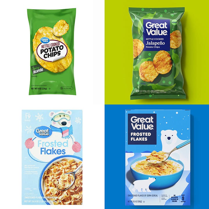 The gentrification of Walmart. Walmart is refreshing its Great Value brand for the first time in over a decade, enhancing packaging across nearly 10,000 items (that is WILD) with a more âmodern visual identity and improved shoppability.â