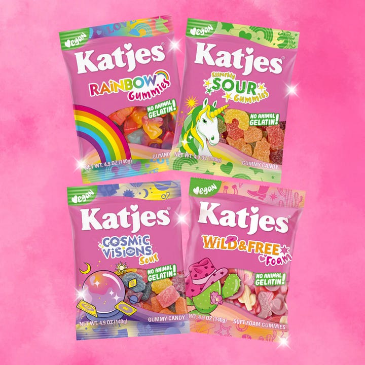 Jake Shane (aka @passthatpuss on IG) Katjes is a family-owned candy business that’s been around since 1910! They were a very early adopter to the dye free craze....removing artificial food coloring in 1988. And by 2016, it was an fully plant-based brand (rare for a gummy company, which usually contain animal-based gelatin). We praise brands doing this today, but Katjes has been at it for decades!