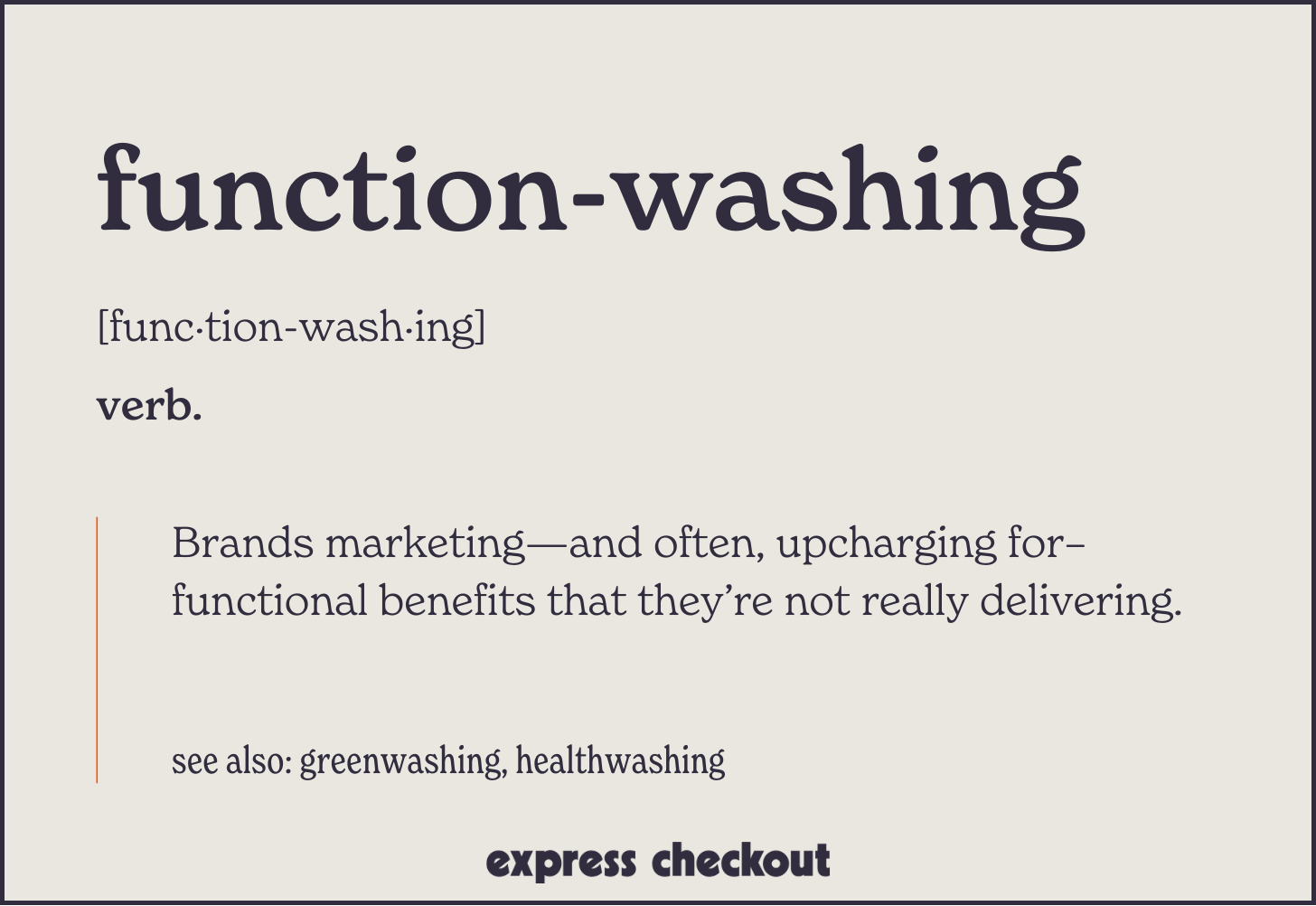 This is by no means a takedown of that brand. I’m actually a fan, and will continue to buy its products and presume the humans behind it are wholly well-meaning. But this brand did something that bothered me. Something that I’ve seen countless times now, from countless other CPG offenders. And—on an unusually productive, frustration-fueled walk—I finally devised the language to call it out for what it is: Functionwashing.