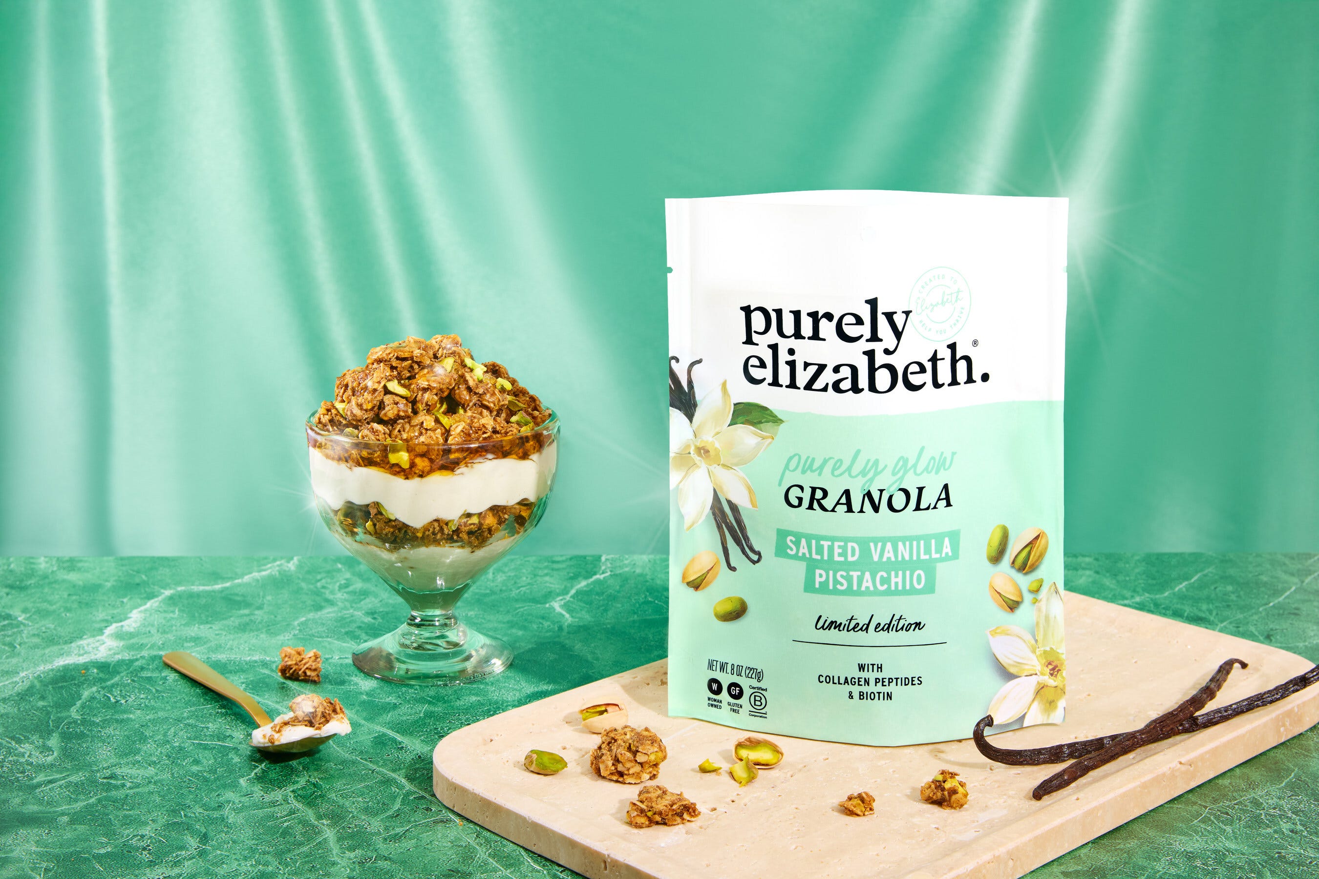 Ingestible beauty. Purely Elizabeth launched its first ever, limited-edition, beauty-inspired granola, made with collagen peptides and biotin—timed to launch during New York Fashion Week. The Purely Glow Salted Vanilla Pistachio Granola is available on the brand’s site, TikTok Shop, and Cha Cha Matcha locations.