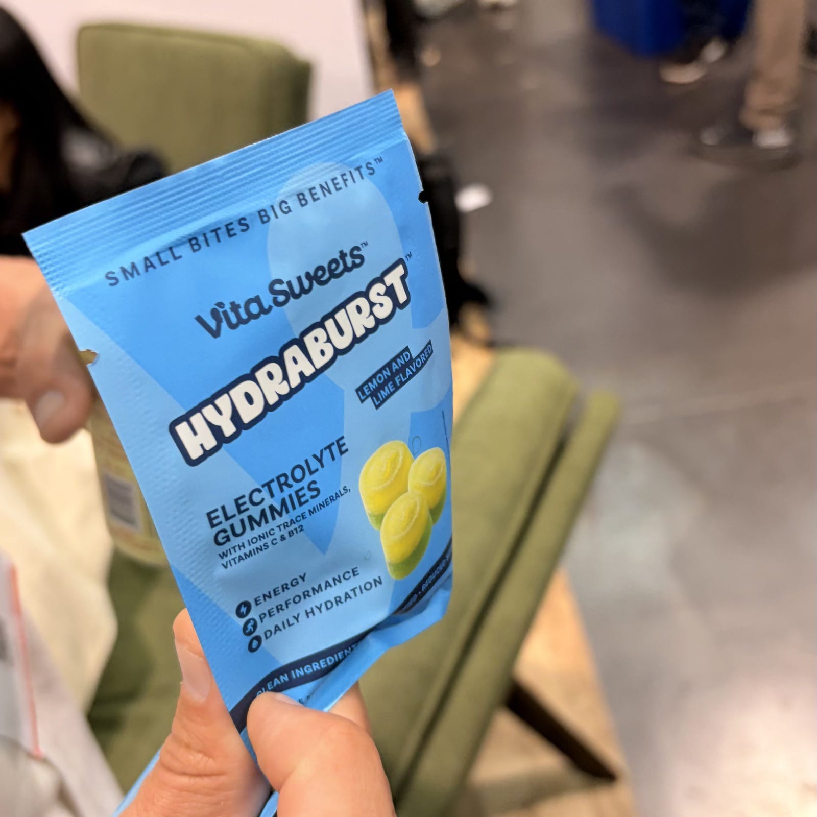 The best part about this show is you’ll be having a conversation with someone and then they’ll just whip out a random snack sample. This happened to me more than once, and one of the times was with Adam from The Angel Group who gave me these hydration gummies from VitaSweets. Hydration gummies are not new, but these have something I haven't quite experienced before. They taste exactly like lemon lime Gatorade. It's kind of wild when you pop one in your mouth for the first time. Literally the first thing that came out of my mouth when I tried one was “that tastes like the yellow Gatorade.” They're pre-launch, but if you want something from the same team right now, they have a hydration powder in the same flavor you can grab today. The full gummy launch is one to watch.