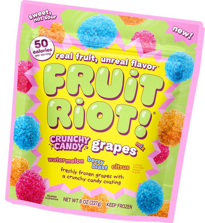 It’s the perfect new brand. When you’re launching a brand you can’t be too out there and you can’t be too normal either. I think Fruit Riot fits that perfect sweet spot (pun intended)—slightly novel yet mostly familiar. It’s frozen fruit with flavoring, not a crazy concept to grasp. But it is very novel, because it didn’t exist on the market. Yes, people have been doing it themselves at home, buying citric acid and fresh fruit to freeze, but there wasn’t a packaged version in the grocery store.