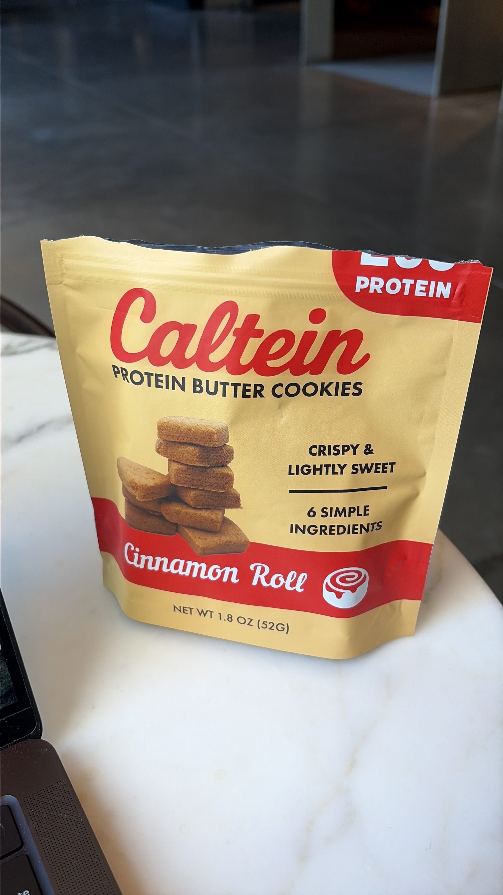 You wouldn’t know it was a protein cookie. You really wouldn’t. Let’s be honest here, most high-protein baked goods aren’t very good. Or at least, you know what you’re eating is a high-protein baked good or sweet treat. They have weird artificial flavors, they’re grainy, or they’re the densest thing known to man. Seriously some of these high-protein snacks are thicc. Caltein dodged all of that. When I say these taste like great shortbread cookies, I mean it—they’re freaking delicious.